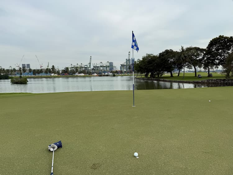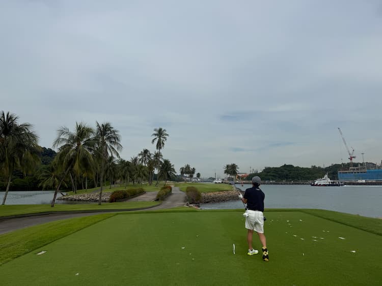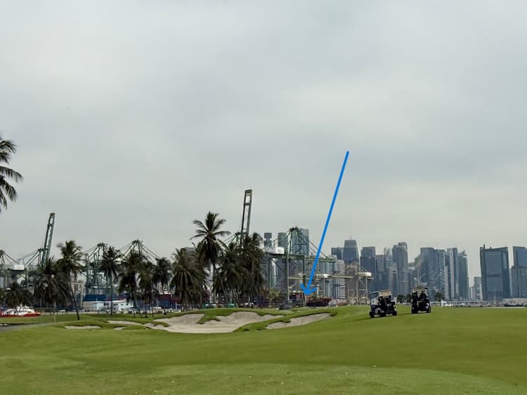 そして、セントーサ島のすぐ向かい側は都市部なので日本では見られない景色の中でグリーンを目指します。