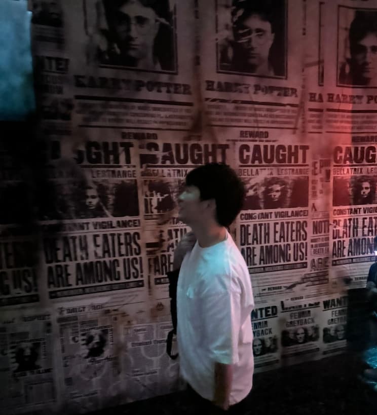 写真は、ハリポタの世界で幸せそうなK端さん。