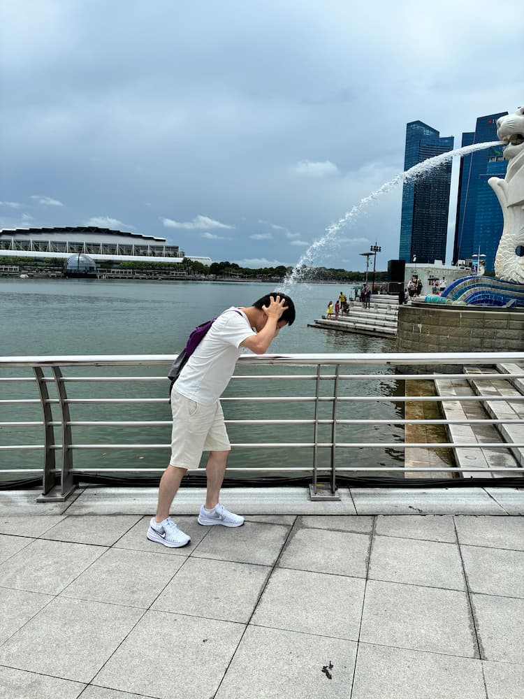 マーライオンでは、水を飲んだり、カバンに水を入れたり、頭を洗ったりしました。(もちろん、写真の話です。)