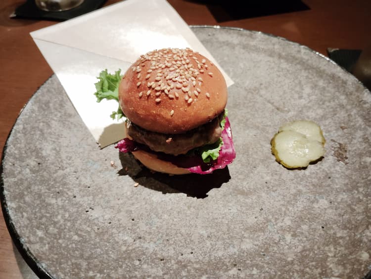 こちらは黒毛和牛100%パティのスライダーバーガー。ワインソースと和牛の相性抜群。一口サイズですが、肉の旨味が凝縮されており、食べごたえがありました。