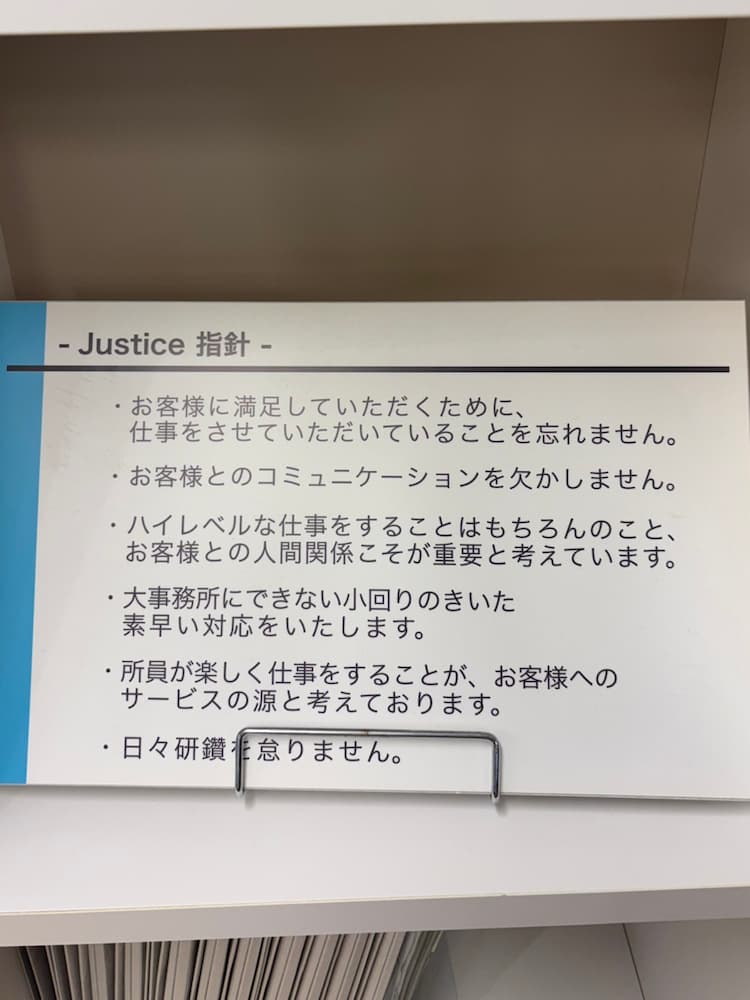 ジャスティスの指針を説明していただいたので、こちらを胸にこれから働いていきたいと思います!