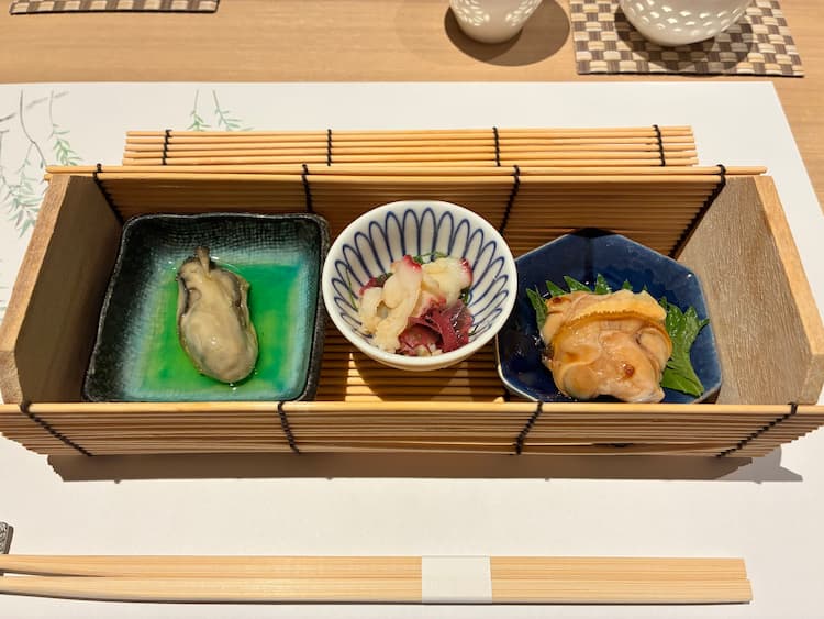 写真は税理士試験前から貝好きが集まって行こうと話していた貝料理屋さんの先付けです。