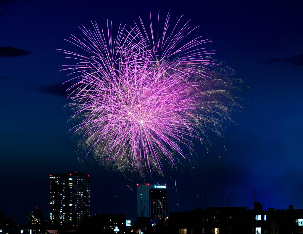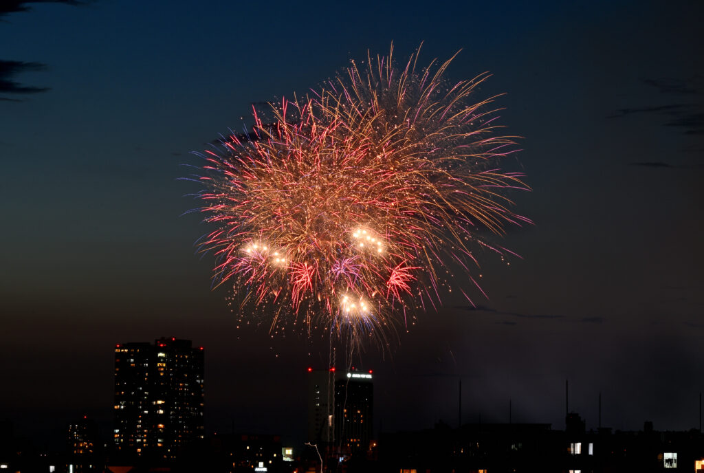 眼下に広がる街の灯りと夜空に咲く大輪の花火、そして間近に響く音。