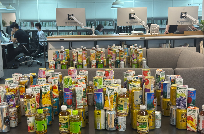 ビールやジュースなどをミックスして分けたり、ゼリーやコーヒー、ハムなどのくじ引きをしたりと毎年恒例の楽しみとなっています。