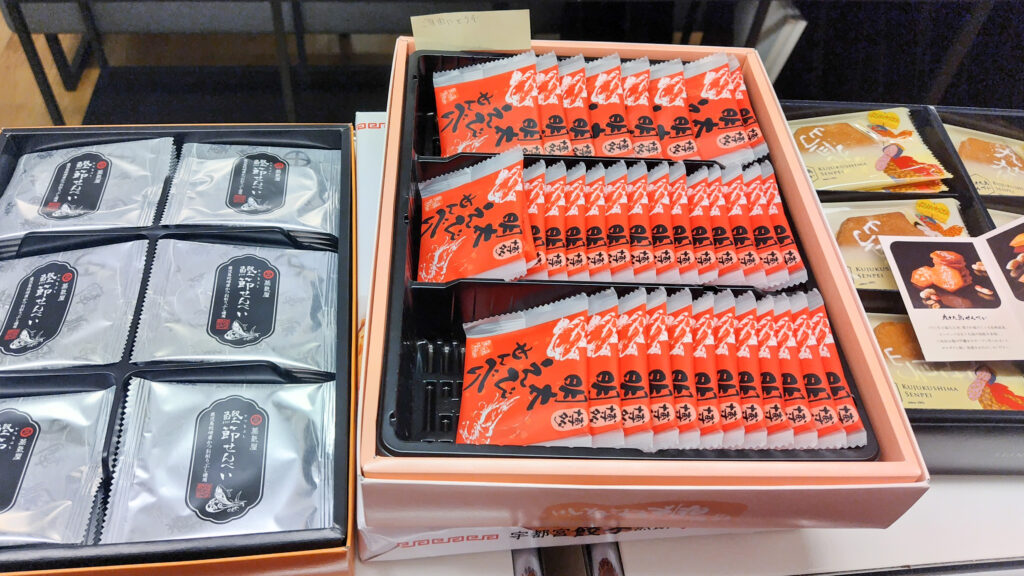 旅行のお土産が多くカフェエリアのお菓子コーナーがにぎわっています。